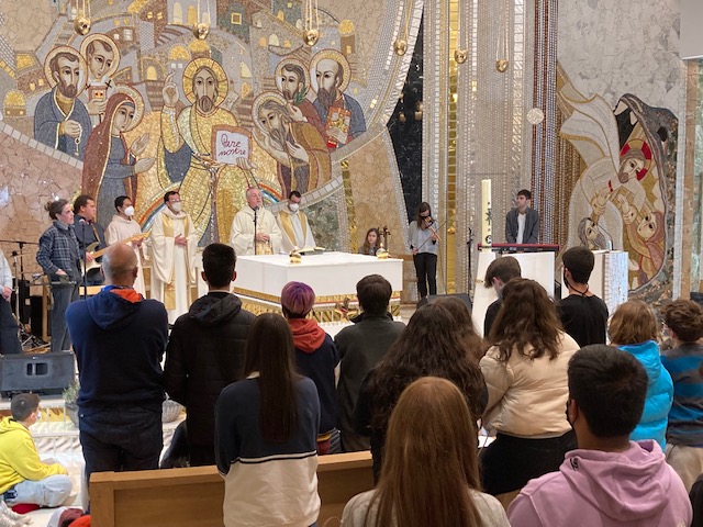 La missa es va iniciar amb una monició participada pels joves i Carolina Bassi, mestra de religió i membre de la comissió coordinadora del Festival, que també va transmetre als assistents esperança, assenyalant que malgrat que la pandèmia ens ha privat de moltes coses, també hem après a pensar en els altres i a descobrir que hem d’aprofitar els bons moments, i va encoratjar els assistents a aprendre a mirar l’altre sense prejudicis.