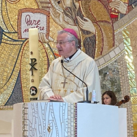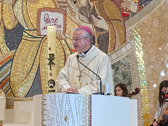 A la seva homilia, Mons. Joan-Enric Vives, va glossar les lectures del dia tot recordant als assistents que el Festival, que ja ha complert la seva novena edició, i la mateixa Eucaristía és una oportunitat per descobrir amb profunditat el que Jesucrist Ressuscitat, Senyor de la història i Rei de bondat, ens ofereix i ens dona i com camina al nostre costat. Va glossar el lema del festival i va parlar de com la confiança ens transforma i ens ajuda a ser millors persones, més enllà del món virtual que ens envolta. Va encoratjar els joves a preguntar-se per qui sentien amor, i a estimar sense dubtes Jesucrist i el seu missatge guaridor i transformador. També va parlar de la JMJ Lisboa el proper agost del 2023, i que les diòcesis ja han començat a preparar, amb activitats que es van dur a terme arreu de la península, justament aquell cap de setmana. La JMJ és un esdeveniment que fou instaurat pel papa sant Joan Pau II al 1985 i des d’aleshores s’ha distingit per ser un moment de convivència i de trobada entre milions de joves de tot el món.